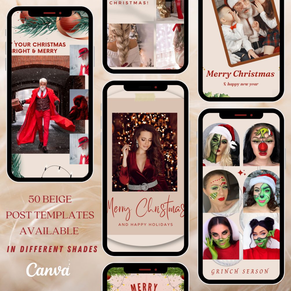 50 Beige Christmas Instagram Templates | Christmas New Year 2023 Social Media Post Templates | Canva Template | Christmas Instagram Feed | Canva