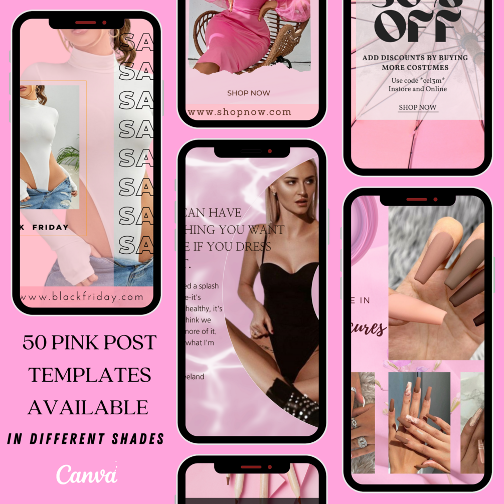 50 Pink Instagram Templates Editable in Canva | Fashion | E-Commerce | Bloggers | Beauty Social Media | IG Post Feed