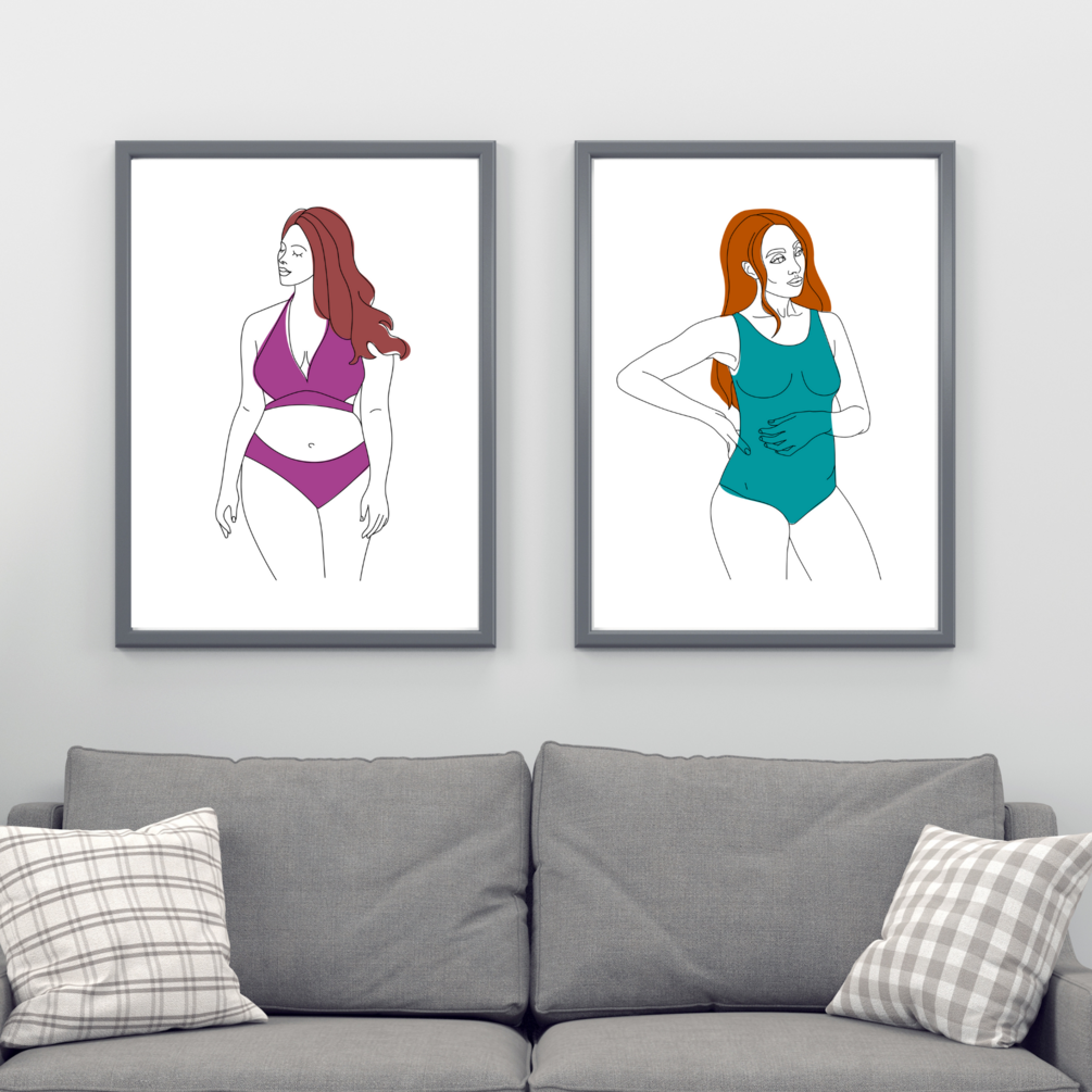 Set of 3 - Woman in a Swimsuit Line Art | Summer Art Print | Minimalist Wall Art | Printable Wall Art | Digital Art Print Line Drawing | DIGITAL DOWNLOAD.